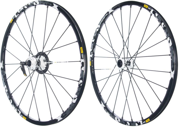 FEATURES: 24 HOLE FRONT AND REAR. BLACK RIM WITH WHITE HUB. ALL BLACK ROUND ZICRAL SPOKES WITH 1 SPOKE EACH WHEEL HALF BLACK, HALF WHITE WITH GRAPHIC. FRONT WHEEL 9/15mm CONVERTIBLE. OPTIONAL LEFTY AND 20mm T/AXLE VERSIONS. CENTRE LOCK ALSO AVAILABLE.